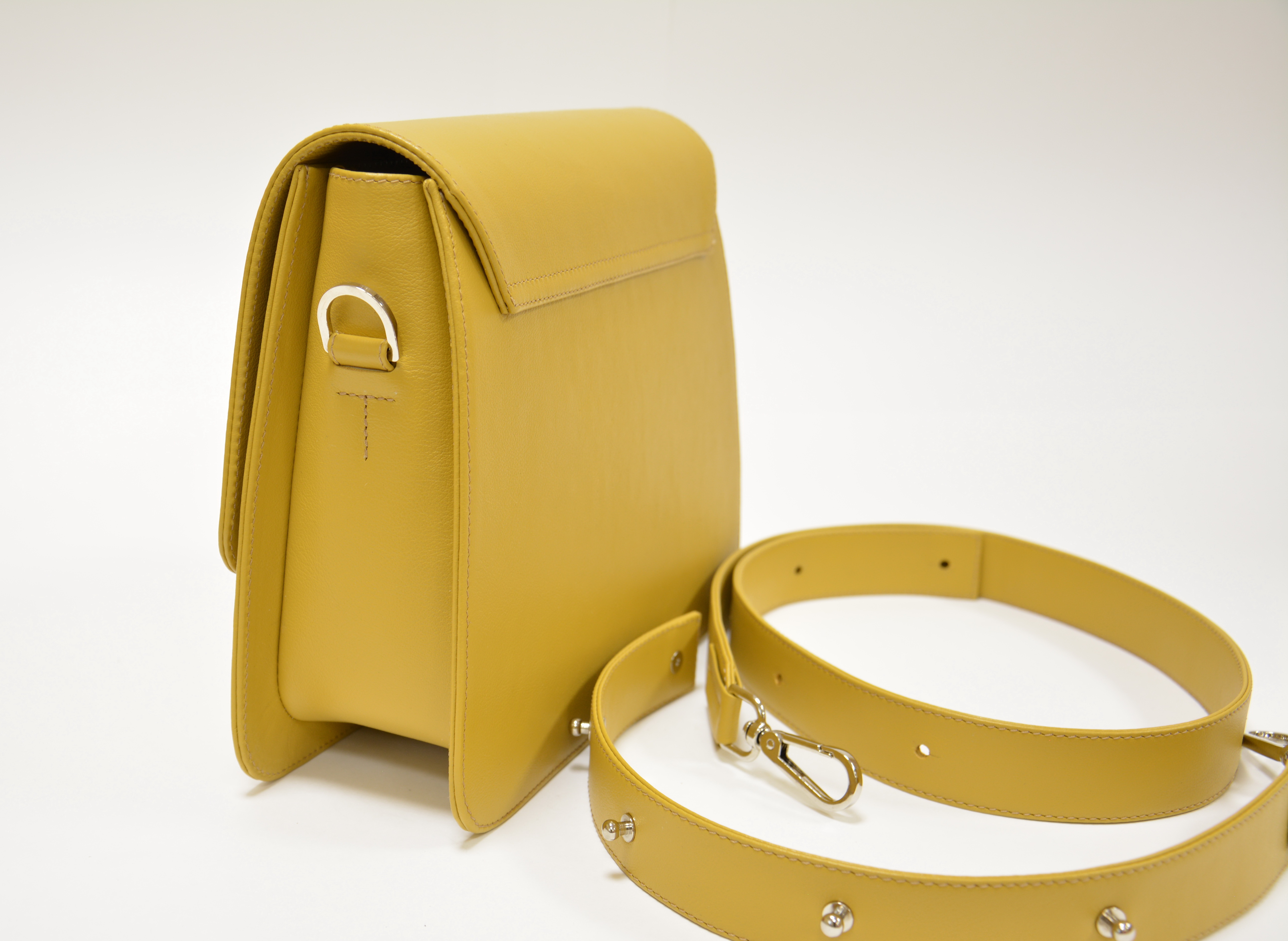 Сумка кросс-боди PETITE, трапецевидной формы, из кожи горчичного цвета. Натуральная кожа, производства российского кожевенного завода, гладкой поверхности, легкое покрытие — защита от царапин и загрязнений. Размер: 22 ширина * 18 высота * 7 глубина. Жесткая, каркасная форма. Одно отделение, два кармана — один на молнии, другой открытый. Достаточно вместительная, поместиться все самое необходимое. Оснащена наплечным ремнем, с возможностью регулировки длинны. Фурнитура цвета Никель (серебристого цвета).