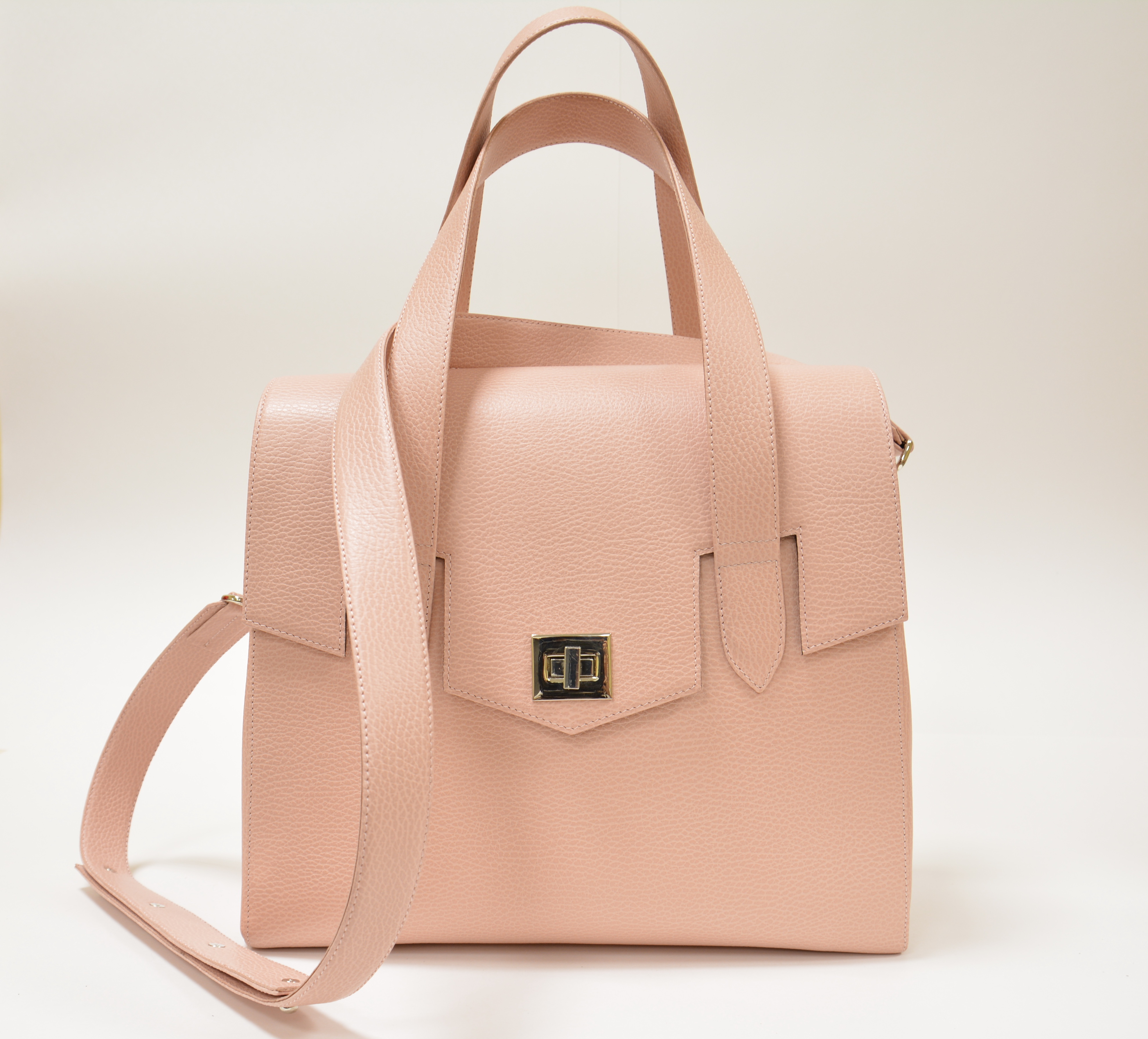 Большая сумка шоппер, из натуральной кожи. Входят документы А4 формата, по дну 32*14 см, высота сумки около 30 см. Закрывается на замок-вертушку, дополнительно установлены скрытые магниты на уголках клапана, для предотвращения задевания краев клапана. Внутри одно большое отделение. Несколько карманов — один большой карман на молнии, один открытый карман и три кармашка для карт. Две большие ручки, легко на можно брать сумку и на локоток и на плечо. Дополнительный длинный наплечный ремень, регулируется кобурными кнопками. Фурнитура цвета никель. Данная сумка доступна к заказу, сроки исполнения — от 14 дней. Цвет и тип кожи обговаривается, окончательная цена будет зависеть от стоимости кожи и выбранной фурнитуры.